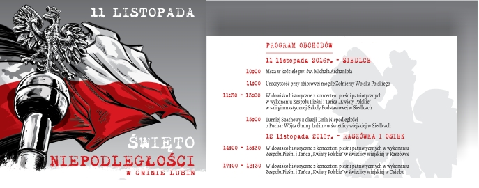 8 listopada 2016Tegoroczne Święto Niepodległości w Gminie Lubin obchodzone będzie w dniach 11 i 12 listopada. Tradycyjnie najważniejsze uroczystości rozpoczną się o godz. 10.00, […]